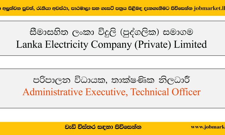 Administrative Executive, Technical Officer – Lanka Electricity Company (Private) Limited