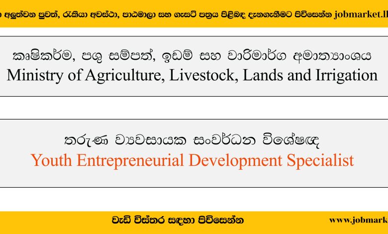 Youth Entrepreneurial Development Specialist – Ministry of Agriculture, Livestock, Lands and Irrigation Vacancies 2025